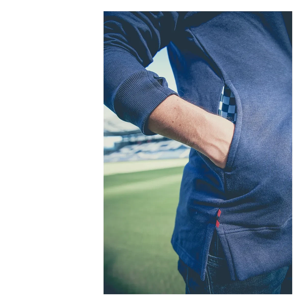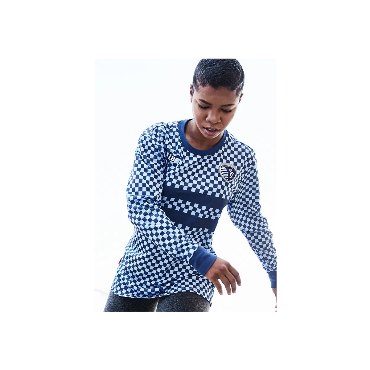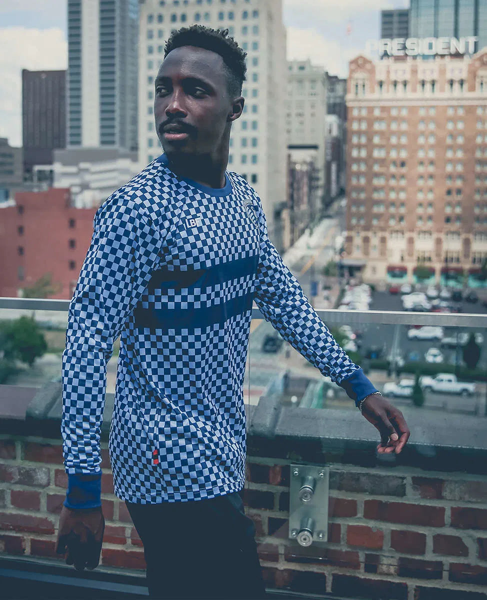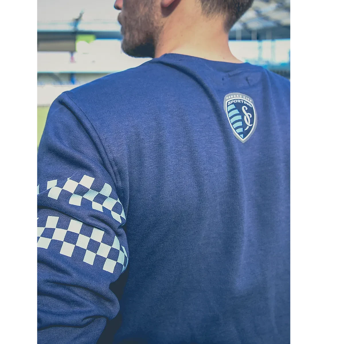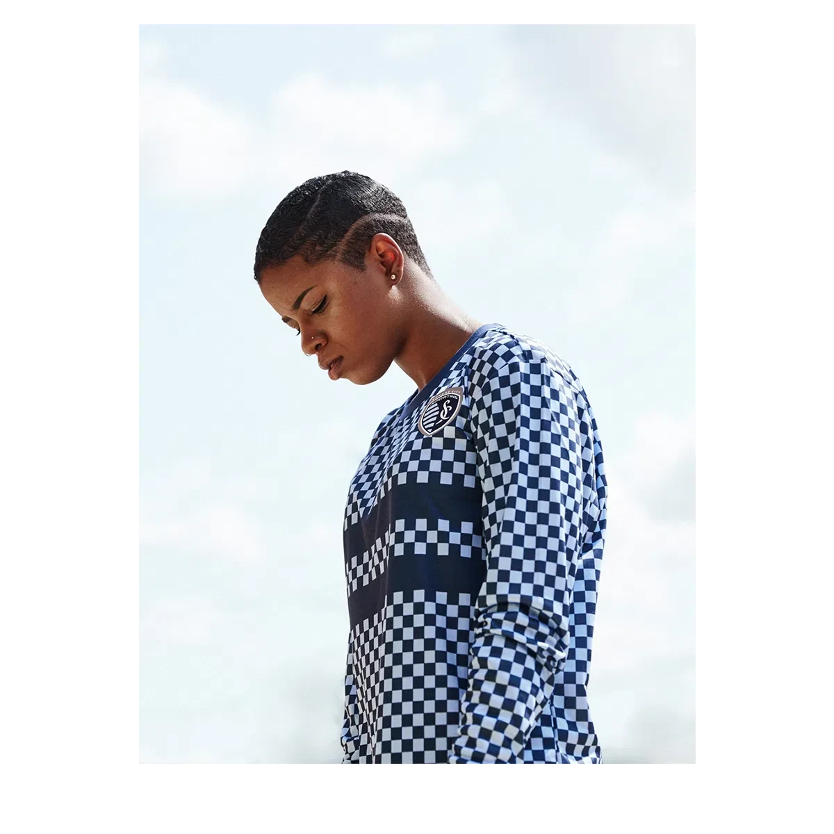 Children's Mercy Park, just a short mile away from the Kansas Speedway, is a fortress. A fortress where Sporting blitzes visiting teams with speed, and has seen them go on an amazing unbeaten run. It's no coincidence that the checkered flag is waved in the stands. We used this as the foundation for the collection, using the checkered pattern and racing stripes as recurring motifs throughout.